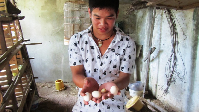 Được biết, con gà đẻ ra những quả trứng nhỏ này cũng được vợ chồng anh Trung nuôi và cho ăn những thức ăn bình thườngng như những con gà khác.