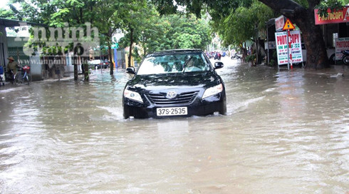 Thành phố Vinh bị nước nhấn chìm, nhiều đoạn đường ngập sâu