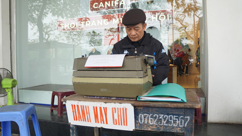 Ngày ấy, ai không có máy chữ thì viết tay, nhưng đơn từ, văn bản nào không thể viết tay thì có thể đi thuê đánh máy. Đường Hai Bà Trưng, quận Hoàn Kiếm cuối thế kỷ trước tập trung rất nhiều thợ đánh máy chữ. Trên vỉa hè trước cổng Tòa án Hà Nội có tới cả chục “thợ gõ” ngồi san sát nhau. Phần lớn đó là những người có tuổi đã nghỉ hưu.