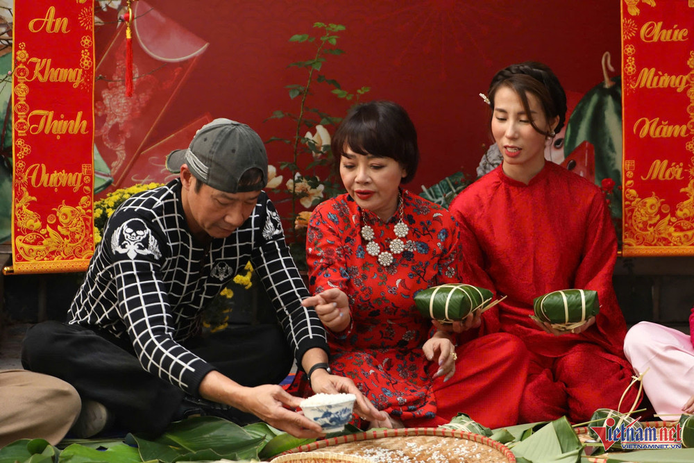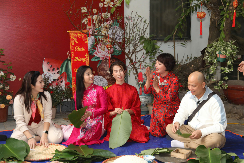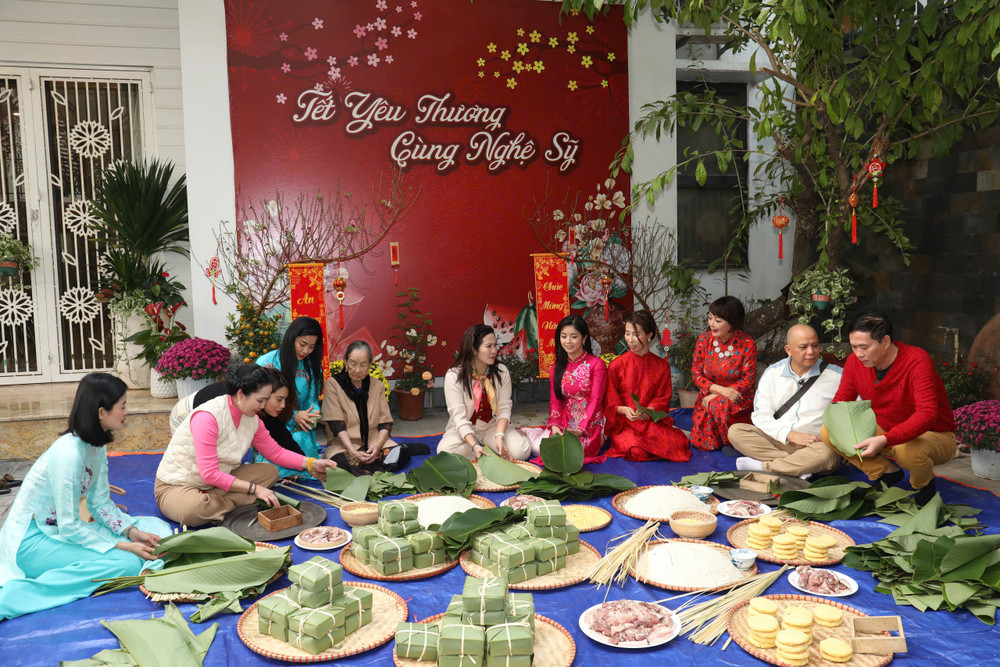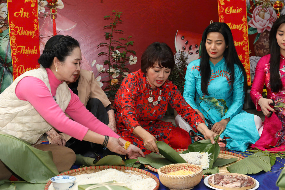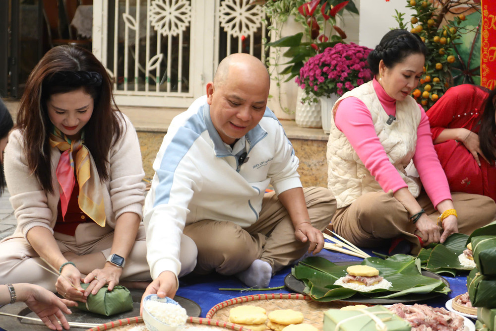 Nghệ sĩ Trà My và các nghệ sĩ Hà Nội thi gói bánh chưng đón Xuân Ất Tỵ 2025