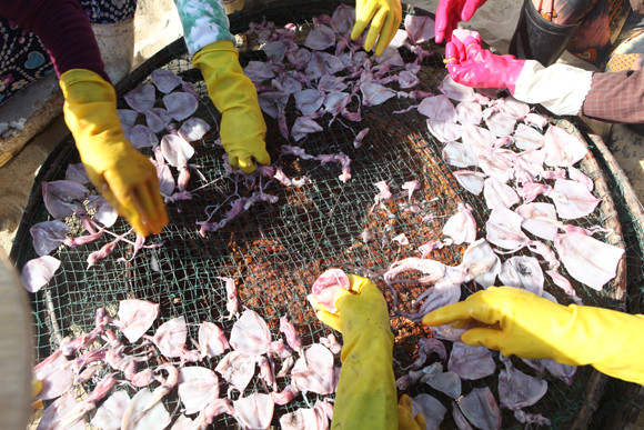 Nếu ai từng đi câu mực cùng ngư dân ở Lý Sơn thì không chỉ cảm nhận sự lý thú, mà còn hiểu được tại sao mực ở nơi này ngon đến thế. Mực câu từ khoảng 2 giờ đêm đến sáng. Mỗi khi câu được con nào lên thì ngư dân làm luôn tại chỗ, mực hong gió biển như thêm vị đặc biệt, hoặc muộn nhất cũng chỉ đến khi thuyền cập bến là ngư dân mang mực hong phơi ngay.
