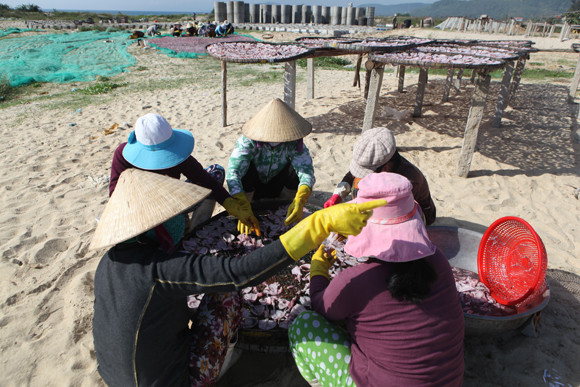 Đây chính là “bí quyết” làm cho mực Lý Sơn nức tiếng. Ngoài mực thì còn có nhiều loài cá ngon khác, được ngư dân mang về phơi khô rồi xuất đi trong ngoài Nam, Bắc. Du khách đến nơi này, không chỉ được đắm chìm trong phong cảnh của biển đảo bình yên, mà con được ngắm những nhịp lao động trong đêm tất bật, từ đảo nhìn xa xa trên mặt biển mênh mông ánh đèn câu mực như sao lấp lánh. Còn trong bờ, những giàn cá hong khô bên bờ biển như sự sắp đặt nghệ thuật ngẫu nhiên của ngư dân đảo Lý Sơn.