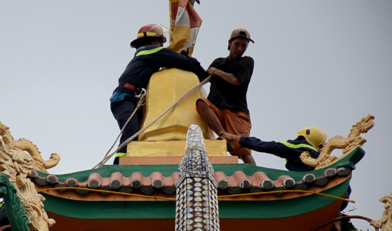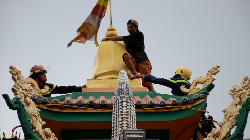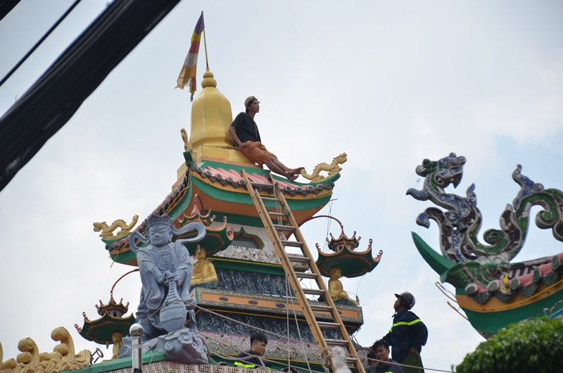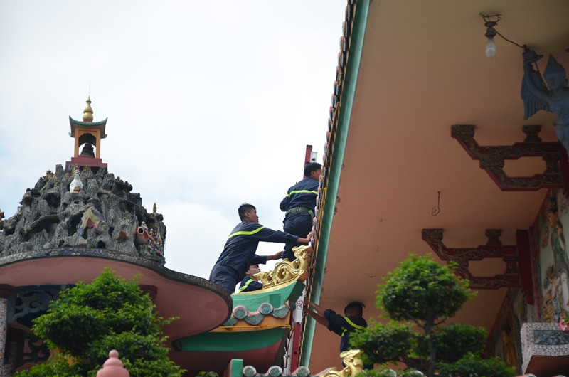 ANTD.VN - Đến 12h30 trưa 15-11, lực lượng Cảnh sát PCCC sau nhiều giờ nghẹt thở nỗ lực, đã giải cứu thành công nam thanh niên nghi “ngáo đá” trèo lên nóc chùa An Phú, đường Chánh Hưng, quận 8, TP.HCM.
