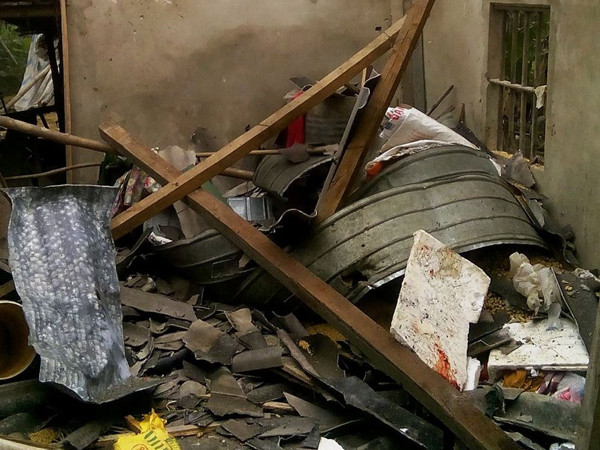 Vụ nổ còn khiến mái nhà bếp của ông Đức sập hoàn toàn, vật dụng trong nhà bắn tung tóe.