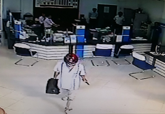 Vụ cướp xảy ra vào khoảng 15h20 ngày 27-9, một người đàn ông đội mũ bảo hiểm màu đỏ, bịt mặt, đeo găng tay xông vào phòng giao dịch ngân hàng. Ngay sau đó người này móc súng đe doạ những người có mặt, ném túi xách về phía nhân viên ngân hàng, bắt lấy tiền bỏ vào bên trong.