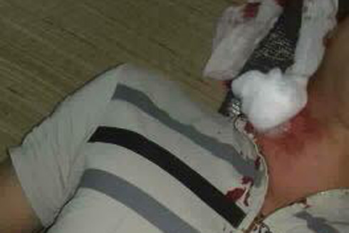 Trước đó, khoảng 10h ngày 30-10, Nguyễn Thế A. đang nằm ở giường cầm điện thoại thì bị một vật xuyên vào cổ gây trọng thương.