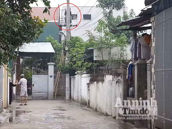Khoảng 11h15, sau nhiều lần thuyết phục, Thắng mới chịu trèo từ cột điện xuống vào nhà.
