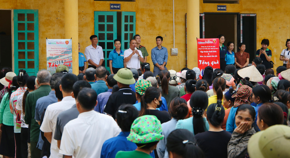 ANTD.VN - 2.000 suất quà gồm các sản phẩm thiết yếu từ đoàn công tác An ninh Thủ đô phối hợp Tập đoàn Bell Đức trao tặng phần nào giúp bà con vùng lũ vơi bớt khó khăn, có thêm động lực để sớm trở lại sản xuất, ổn định cuộc sống.