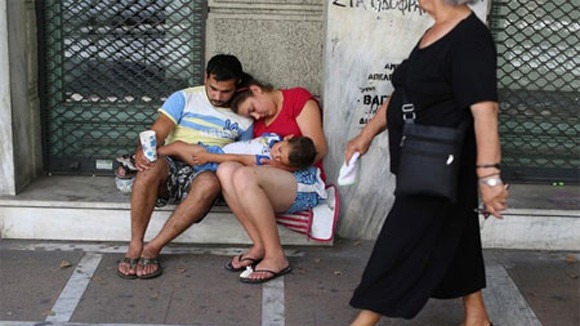 Dimitris, 50 tuổi, phải xin cháo phát chẩn của tòa thị chính ở Athens. Im lặng và ngượng ngùng, hàng trăm người Hy Lạp, cả nam lẫn nữ, ở tất cả các độ tuổi, vẫn ăn mặc đẹp, đứng chen chúc nhau xếp hàng, ngày 2 lần, để nhận một bữa ăn nóng sốt. Là một thợ sơn nhà, Dimitris chỉ kiếm được vài ngày công mỗi tháng và tệ hơn là “Mỗi ngày công chỉ được trả từ 20-25 euro. Không bảo hiểm, không gì cả”.