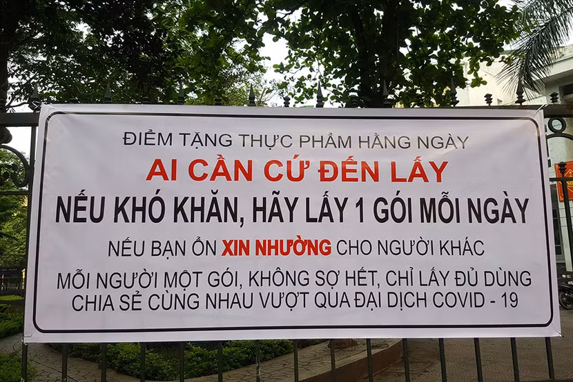 Trong cơn bĩ cực, những tấm lòng từ thiện đã lại tỏa sáng đúng lúc, với các chương trình phát suất ăn miễn phí, tặng nhu yếu phẩm cho người nghèo. Ở bất kỳ điểm thiện nguyện nào, người ta cũng thấy tấm biển ấm tình người: "Nếu khó khăn, xin lấy 1 gói mỗi ngày".