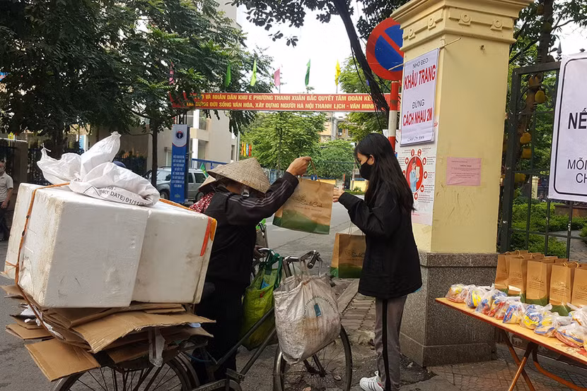 Điểm phát quà từ thiện để hỗ trợ người khó khăn tại phường Thanh Xuân Bắc (quận Thanh Xuân, Hà Nội)