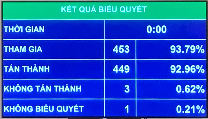 Kết quả biểu quyết thông qua Luật Lực lượng dự bị động viên