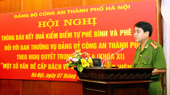 Báo cáo tại Hội nghị, Thiếu tướng Trần Thùy, Phó Giám đốc CATP cho biết, Ban Thường vụ Đảng ủy CATP dưới sự chủ trì của Đại tá Nguyễn Đức Chung, Bí thư Đảng ủy, Giám đốc CATP đã tiến hành kiểm điểm theo trình tự: Tập thể trước, cá nhân sau. Các ý kiến phát biểu đều được chuẩn bị kỹ, tập trung vào các vấn đề nổi cộm, trên cả 3 nội dung theo tinh thần Nghị quyết Trung ương 4. Với phương châm giúp nhau cùng tiến bộ, vì sự trong sạch, vững mạnh của tập thể, công tác kiểm điểm tự phê bình và phê bình của Ban Thường vụ Đảng ủy CATP đã thể hiện được tính khách quan, toàn diện; bảo đảm đúng thực chất.