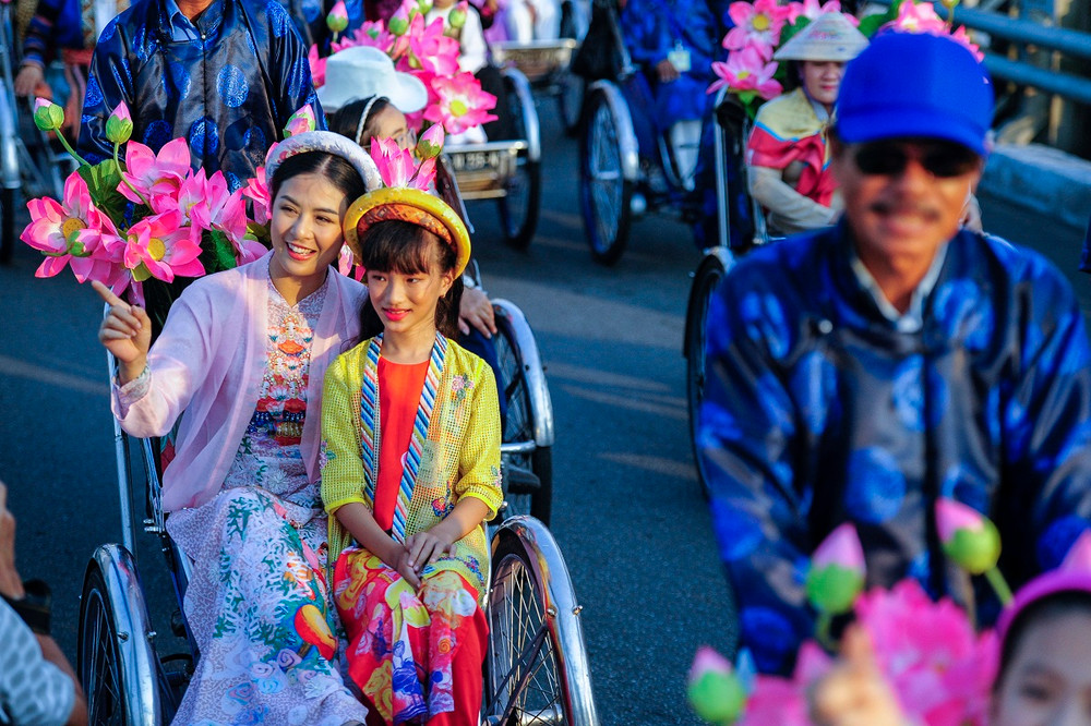 ANTD.VN - Ngọc Hân sử dụng toàn bộ tranh vẽ của họa sĩ nổi tiếng Phạm Trinh về nhã nhạc cung đình để đưa lên tà áo dài bằng phương pháp in, thêu, đắp nổi...