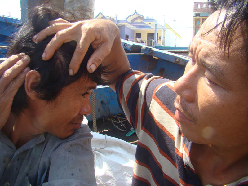 Để tàu khỏi bị chìm, cùng với bơm toàn bộ số dầu tràn xuống biển, ngư dân đã phải sửa chữa phần thân bị hư hỏng. Đến sáng sớm 25/10, chiếc tàu chạy và cập cảng Sa Kỳ, xã Bình Châu, an toàn.