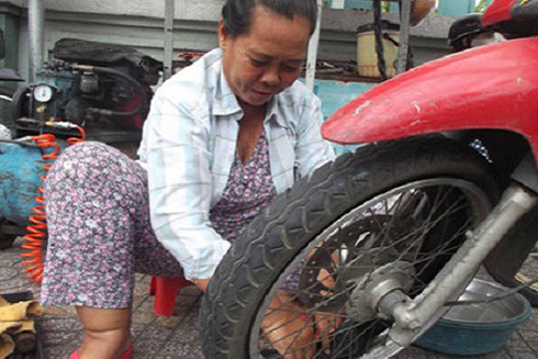 Bà Phạm Thúy Hằng (SN 1963), hàng ngày vẫn mưu sinh bằng nghề sửa xe máy và chở “xe ôm” tại góc đường Lê Văn Sỹ - Đặng Văn Ngữ, phường 10, quận Phú Nhuận. Năm 1978, ở cái tuổi 18 trăng tròn của người con gái, bà Hằng nên duyên với người chồng đầu tiên. Chưa kịp nếm trải niềm hạnh phúc, chồng bà nhập ngũ lên đường làm nhiệm vụ quốc tế tại chiến trường Campuchia. Không có chồng bên cạnh, bà vượt cạn sinh đứa con gái đầu lòng. Bà vừa chăm sóc con nhỏ, vừa phụng dưỡng cha mẹ già. Bà làm đủ thứ nghề từ rửa bát, giặt thuê, phụ hồ… để có tiền lo cho gia đình.