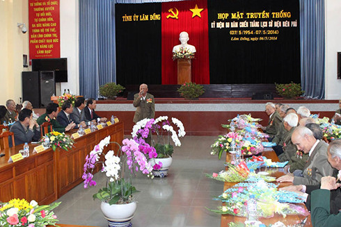 Cựu chiến binh Đại đoàn 351 Dương Xuân Thúy phát biểu tại Hội thảo khoa học kỷ niệm 60 năm Chiến thắng Điện Biên Phủ do Tỉnh ủy Lâm Đồng tổ chức