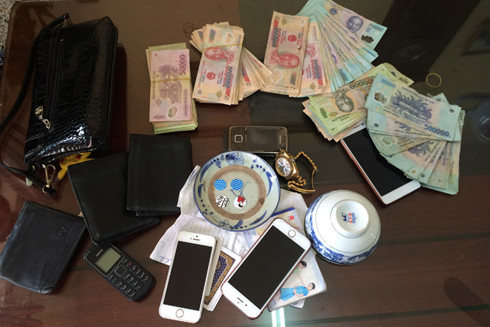 Thời điểm này, lực lượng chức năng bắt quả tang tại vườn bưởi có một số đối tượng đang đánh bạc dưới hình thức xóc đĩa. Cơ quan Công an thu giữ tiền mặt 45 triệu đồng và dụng cụ đánh bạc gồm một bộ bát đĩa, quân bài, quân vị, nhiều điện thoại di động.