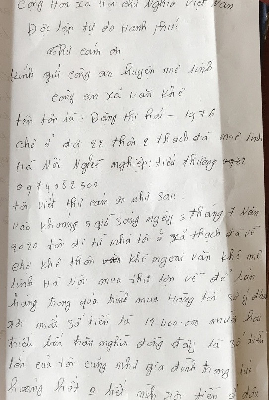 Lá thư chị Hải viết cảm ơn Công an xã Văn Khê về tinh thần, trách nhiệm của các chiến sỹ Công an xã