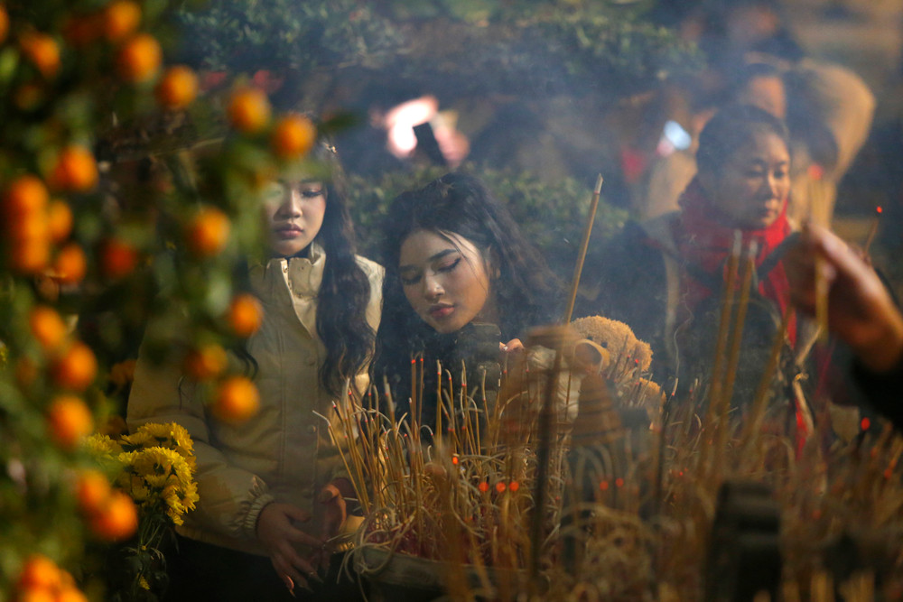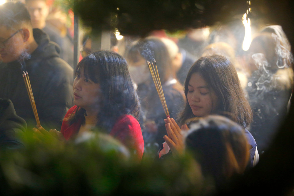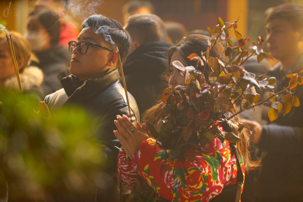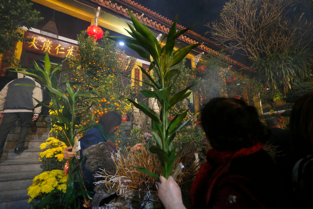 Người dân Hà Nội đi chùa cầu an trong đêm giao thừa
