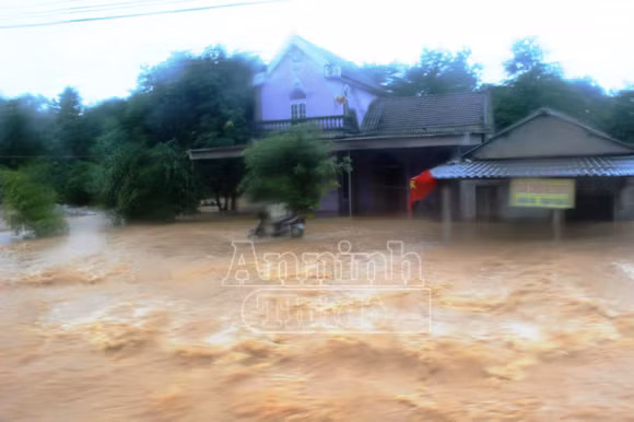 Ở huyện Đức Thọ, nước ở các con sông đổ về đã khiến 7 xã ngoài sông Lam cô lập hoàn toàn. Nhiều con đường chìm sâu trong lũ từ 3-4m.