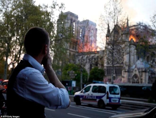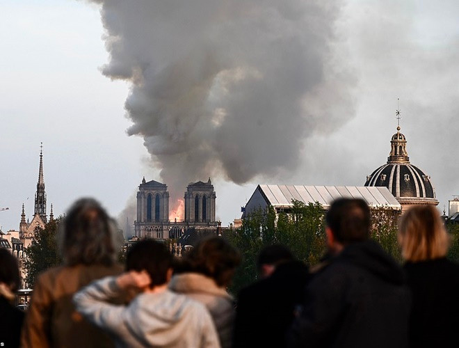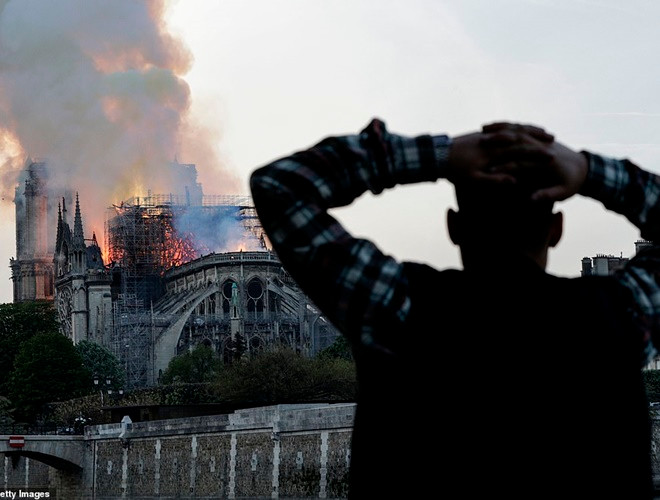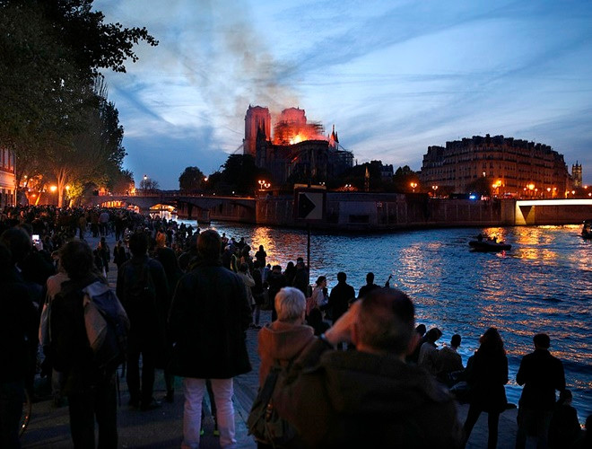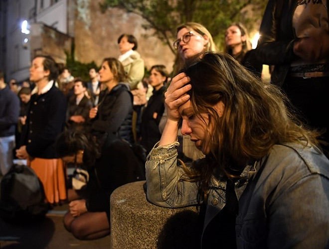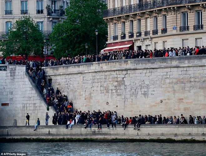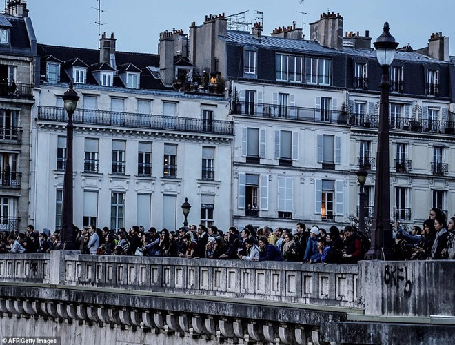 ANTD.VN - Hàng nghìn người dân Paris và khách du lịch đã tập trung xung quanh khu vực gần nhà thờ Đức Bà Paris để cầu nguyện. Họ bày tỏ sự bất lực, tiếc nuối khi chứng kiến công trình lịch sử niên đại 850 tuổi bị tàn phá nghiêm trọng trong trận hỏa hoạn chiều 15-4.