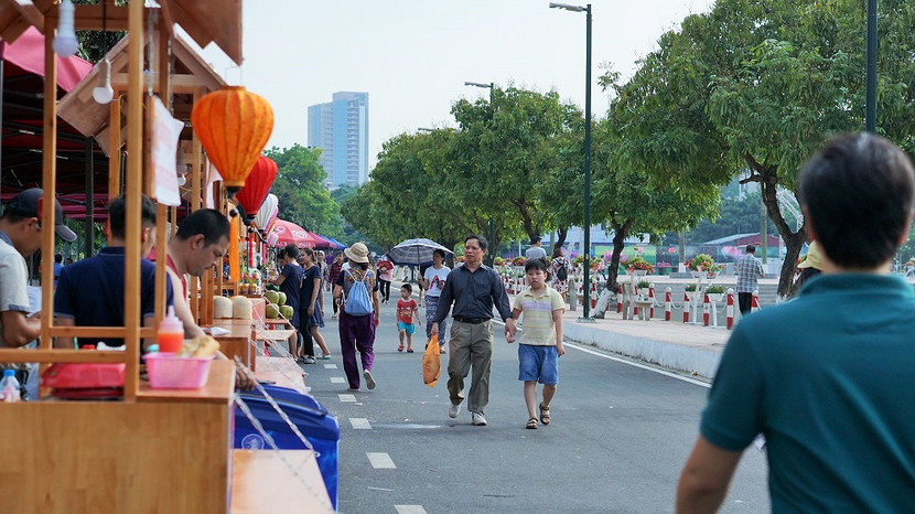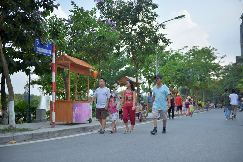 Phố đi bộ Trịnh Công Sơn là không gian công cộng đáp ứng nhu cầu vui chơi, giải trí và thưởng thức văn hóa, ẩm thực của người dân Thủ đô