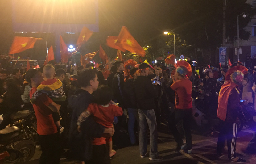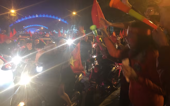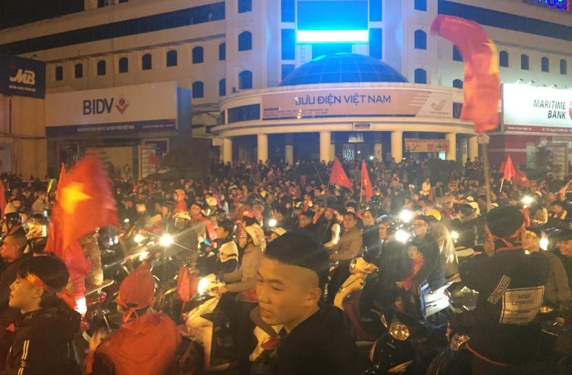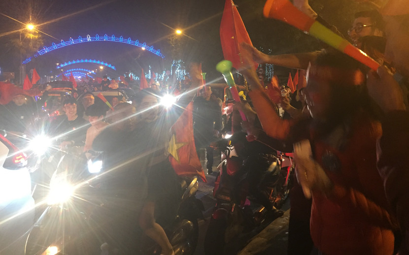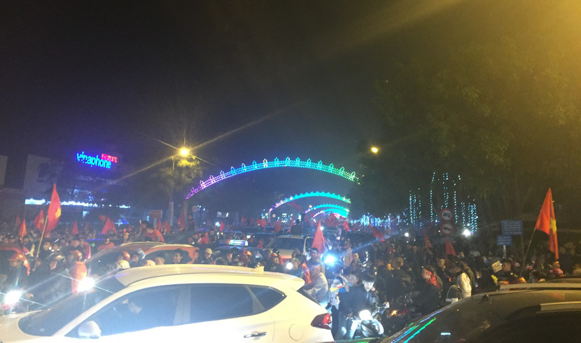 Ngay khi tiếng còi kết thúc trận đấu vang lên với chiến thắng thuộc về Viêt Nam, người dân đồng loạt đổ ra đường ăn mừng