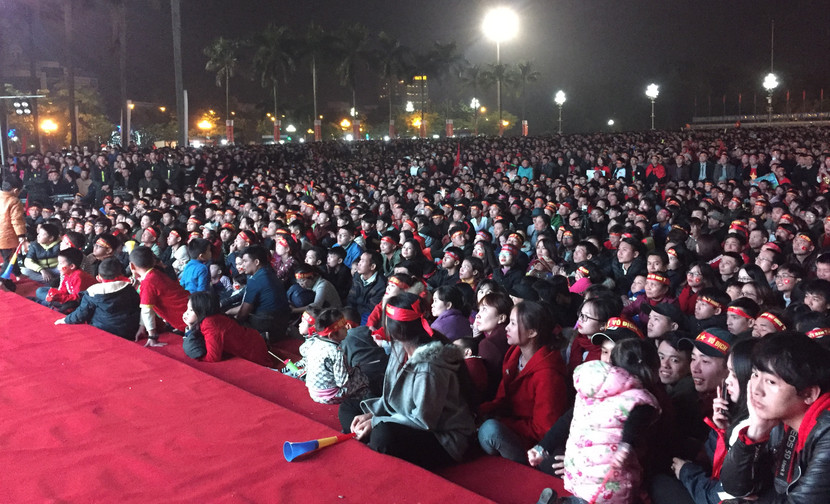 Hàng ngàn người dân tập trung ở Quảng trường Hồ Chí Minh để theo dõi trận chung kết lượt về giữa Việt Nam và Malaysia trên sân Mỹ Đình qua màn ảnh rộng