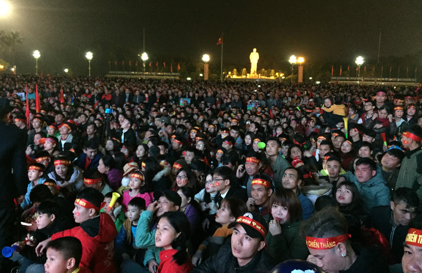 Hàng ngàn người tập trung ở Quảng trường Hồ Chí Minh, TP Vinh, Nghệ An, để theo dõi trận chung kết qua màn ảnh rộng