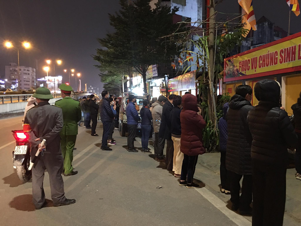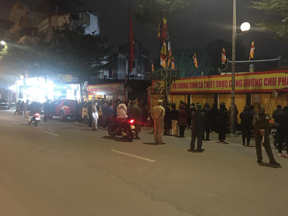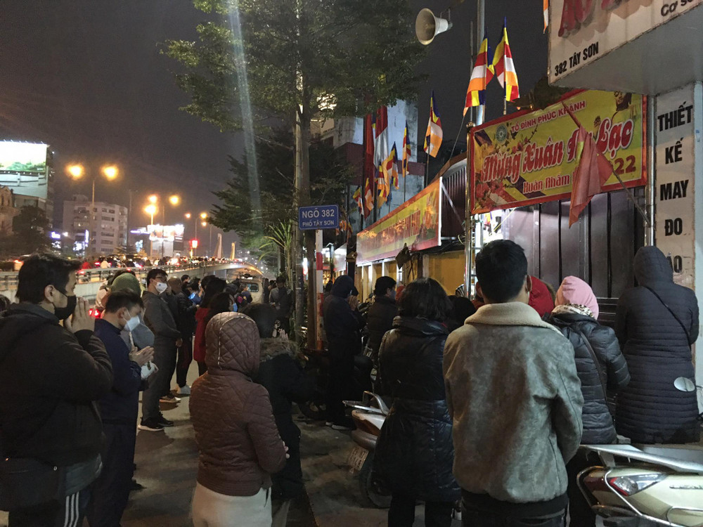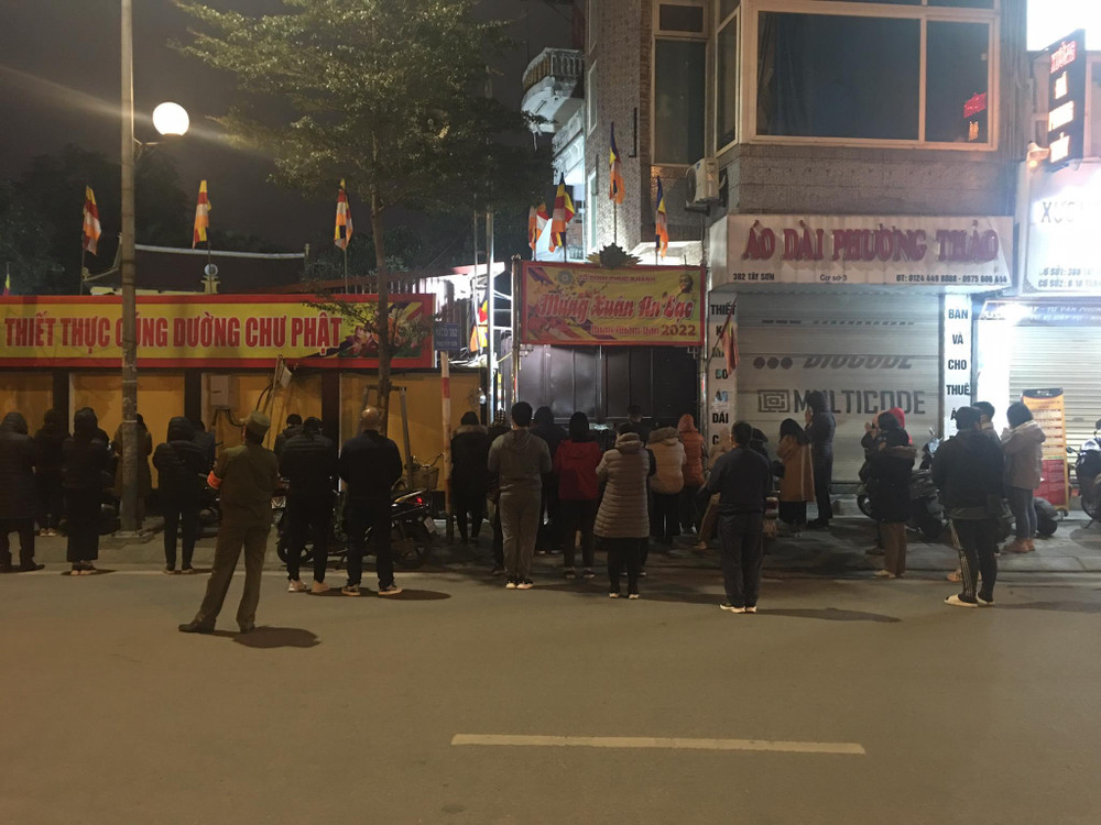 ANTD.VN - Tối ngày 14/2 (Tức ngày 14 tháng Giêng), chùa Phúc Khánh tổ chức lễ cầu an trực tuyến. Dù được thông báo nhà chùa đóng cửa nhưng nhiều người dân vẫn tập trung trước cổng vái vọng.