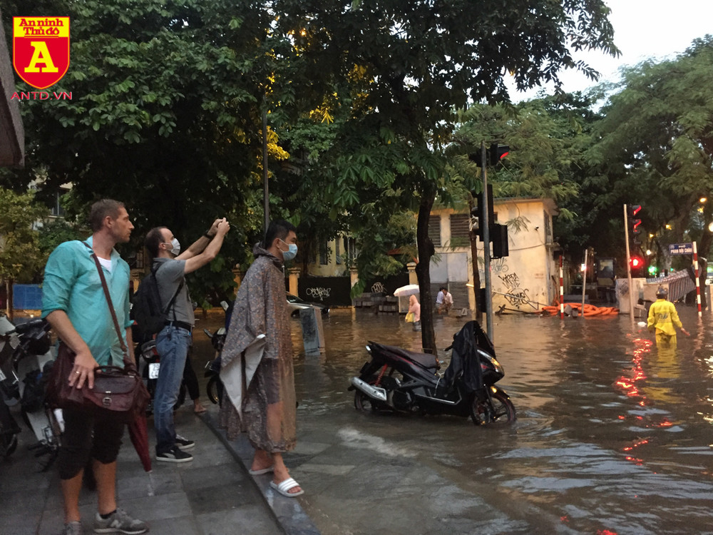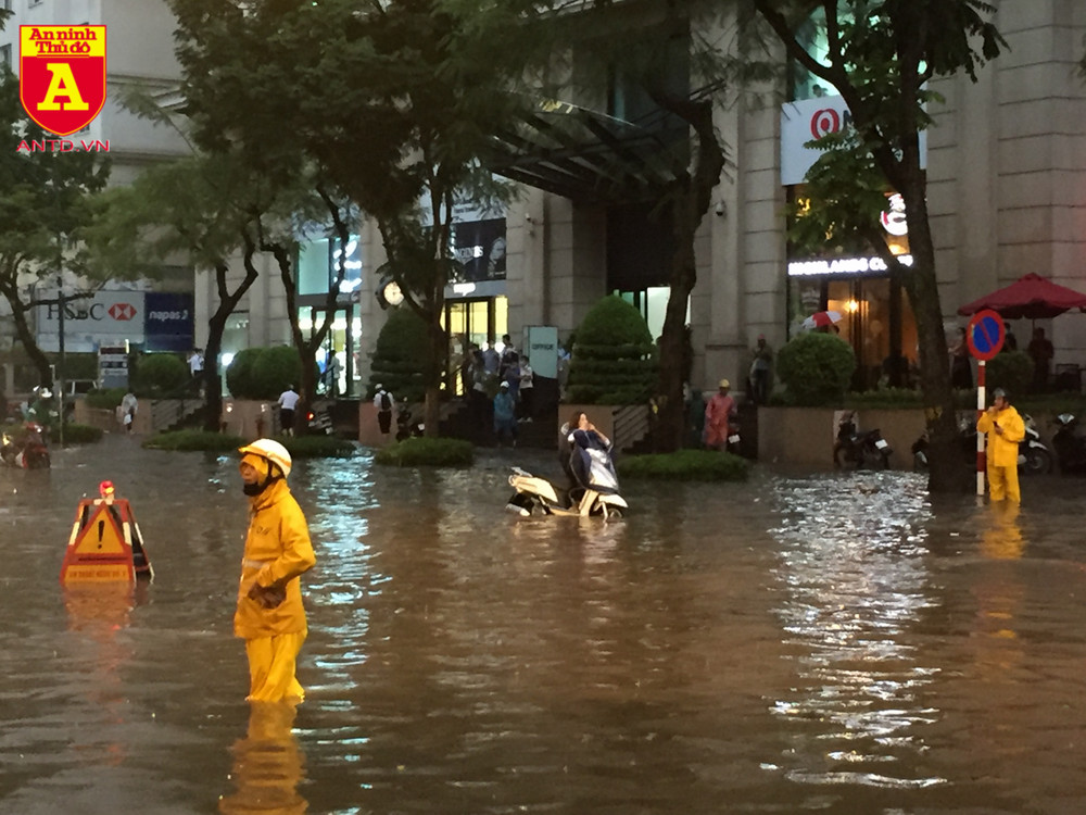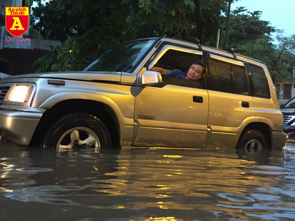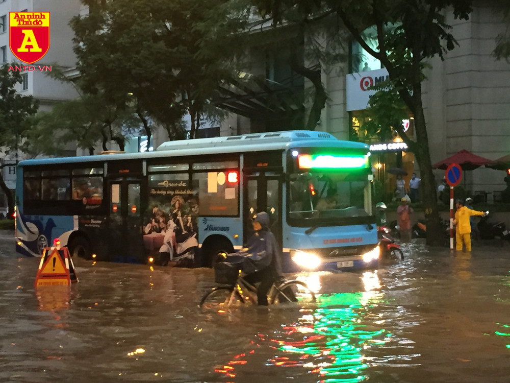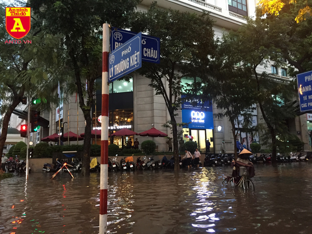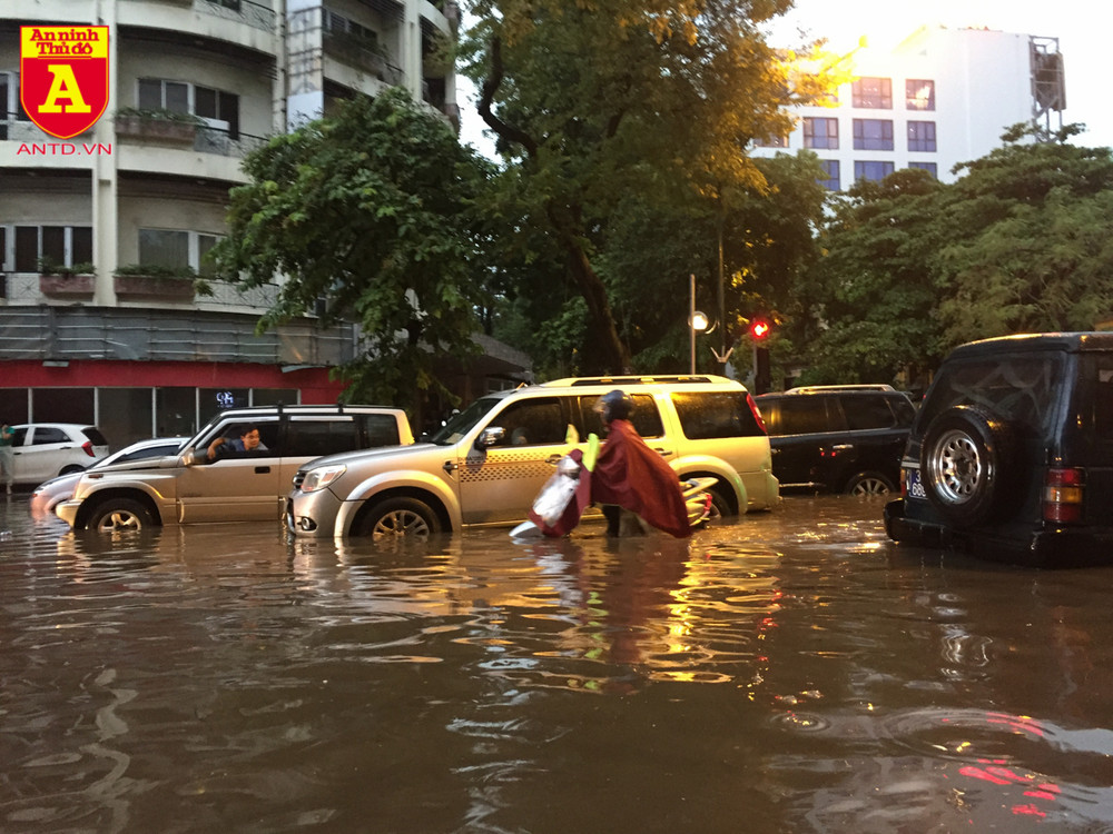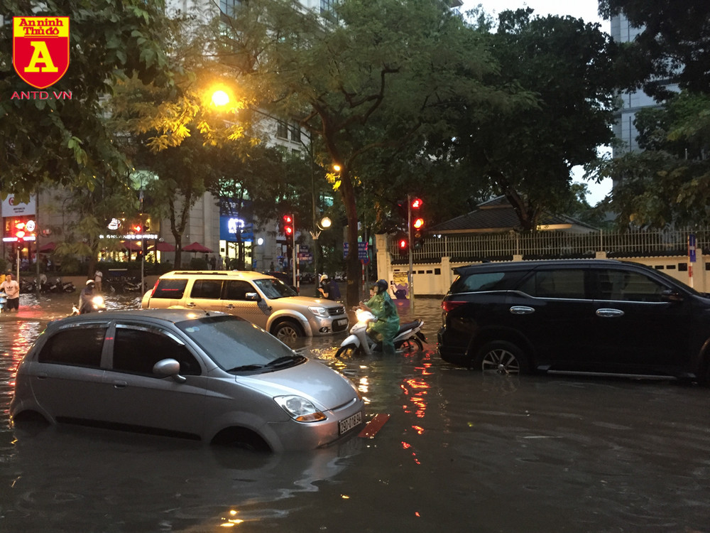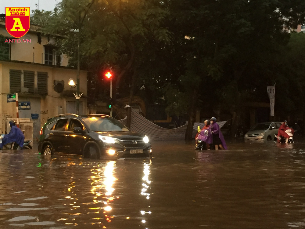 ANTD.VN - Cơn mưa lớn vào cuối giờ chiều ngày 17-8 đã khiến nhiều tuyến phố ở Hà Nội ngập sâu, gây khó khăn cho các phương tiện giao thông. Ghi nhận tại nút giao thông ngã tư Lý Thường Kiệt - Phan Bội Châu (quận Hoàn Kiếm, Hà Nội), nhiều ô tô, xe máy bị nước ngập không thể di chuyển được, mặc dù công nhân công ty thoát nước đã có mặt để tích cực xử lý...