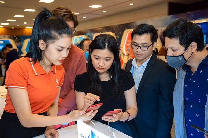 Gian trưng bày các thiết bị 5G của VinSmart thu hút đông đảo người tham gia trải nghiệm. Vsmart Aris 5G được trang bị công nghệ mạng 5G Sub 6 GHz với tốc độ tải xuống cao gấp 40 lần so với mạng 3G và 8 lần so với mạng 4G. Trong thời gian tới, hãng điện thoại Việt sẽ tiếp tục nâng cấp khi các mẫu điện thoại thế hệ sau sẽ ứng dụng băng tần mmWave.