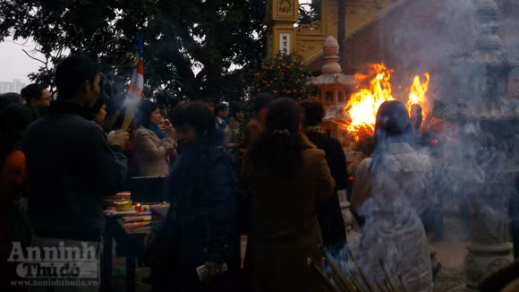 Tối muộn, dòng người đến các đình, đền, chùa khấn lễ vẫn nườm nượp