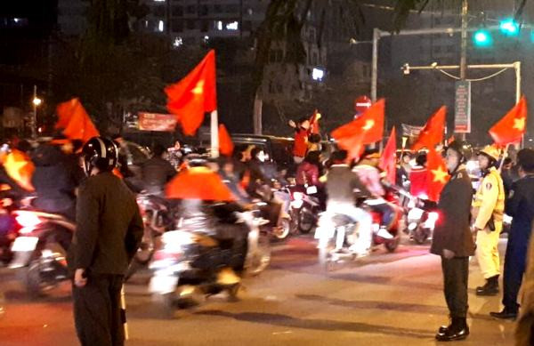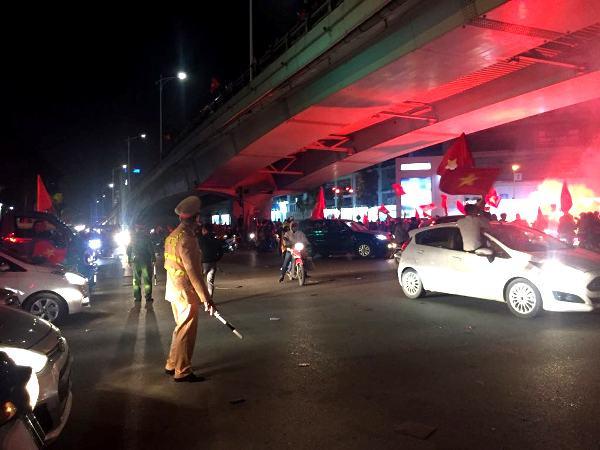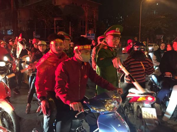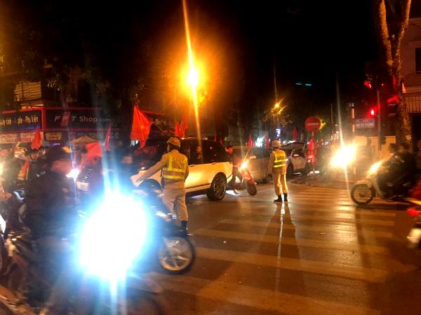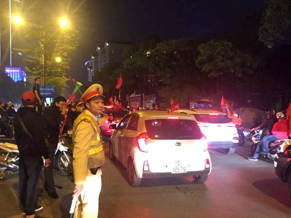 Từ khu vực ngoài sân vận động Quốc gia Mỹ Đình, Đại úy Trần Quang Chinh, Đội phó Đội CSGT số 6 thông tin nhanh qua điện thoại: Các cổ động viên đang di chuyển lên khu vực trung tâm thành phố. Cả nghìn cổ động viên ở ngoài sân bóng đã di chuyển, đó là chưa kể đến hàng vạn cổ động viên trong sân vận động vẫn chưa đổ ra đường. Toàn bộ các chốt, tuyến phân luồng do Đội CSGT số 6 phụ trách hiện đang căng mình làm nhiệm vụ điều tiết giao thông.