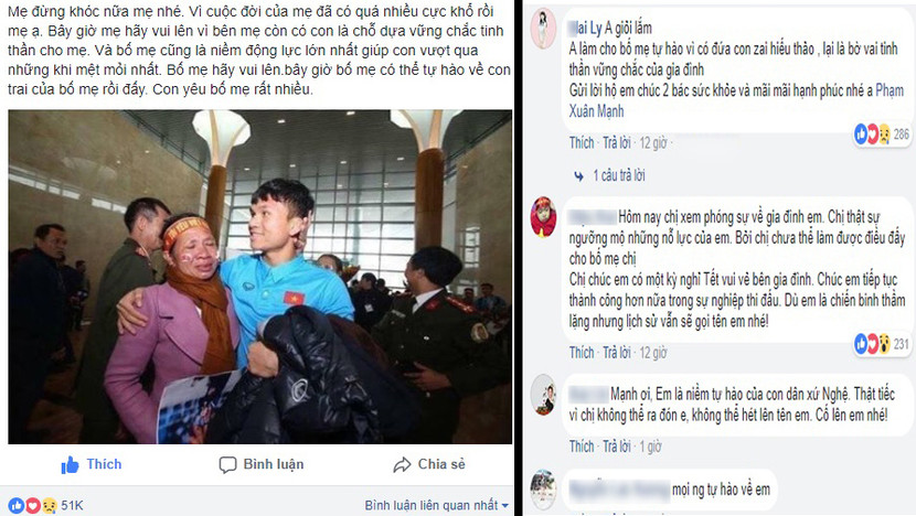 Hơn 2 vạn lượt chia sẻ, cùng hàng ngàn bình luận của cộng đồng mạng bày tỏ sự đồng cảm và động viên Phan Văn Đức