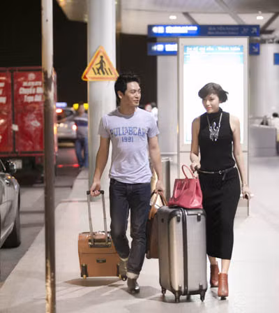 Trang "Lạ" và Phan Anh làm thủ tục tại sân bay