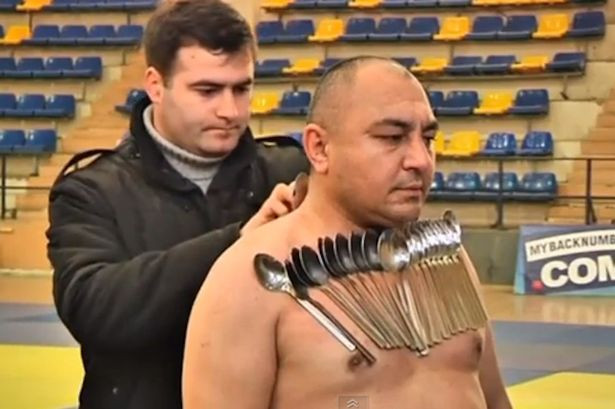 Anh Etibar, 41 tuổi, từng là một huấn luyện viên kick-box, đã dùng khả năng từ trường đặc biệt của minh để hút 53 chiếc thìa lên người mình, phá kỉ lục của chính anh lập được trước đó là 50 chiếc thìa.