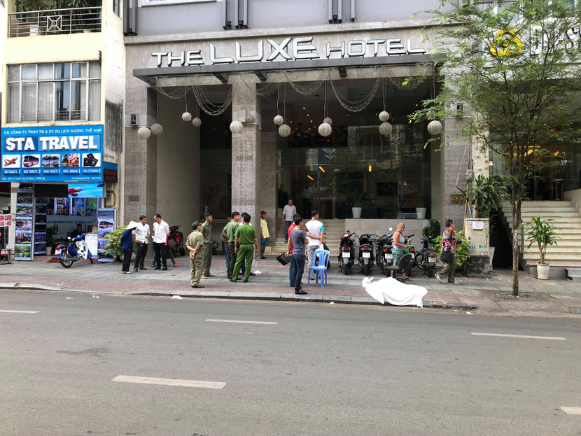 Khi mọi người xung quanh chạy đến thì phát hiện 1 người đàn ông nằm bất động trên vỉa hè, ngay ranh giữa giữa 2 khách sạn lớn. Người dân kiểm tra thì phát hiện người đàn ông trên đã tử vong.