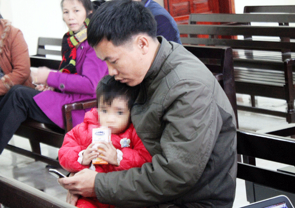 Anh Hùng bế con đến dự phiên tòa xét xử vợ
