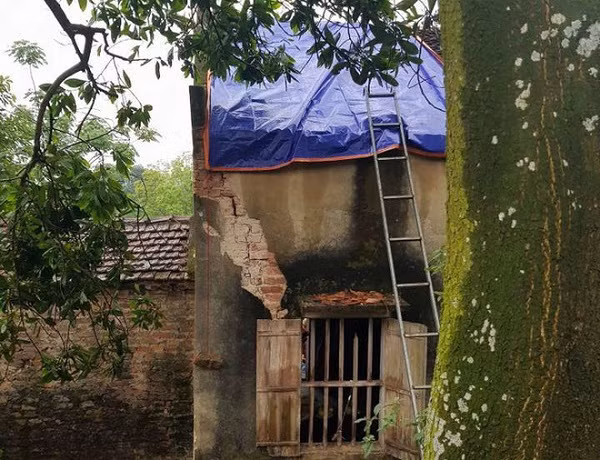 Sự việc khiến chị T tử vong tại chỗ, anh B và con may mắn thoát nạn, căn nhà bị hư hỏng phần mái, cây cối phía sau nhà cũng bị gãy cành.