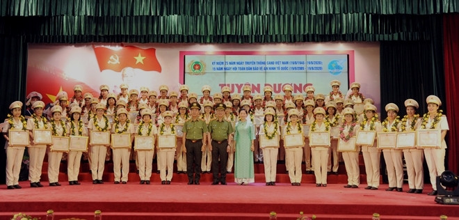 Thứ trưởng Nguyễn Văn Thành, Thứ trưởng Trần Quốc Tỏ, đồng chí Trần Thị Hương cùng 61 phụ nữ Công an cấp cơ sở xuất sắc