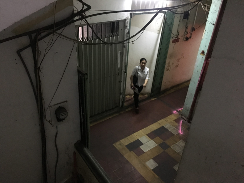 Hệ thống dây điện chằng chịt bên trong chung cư cũ