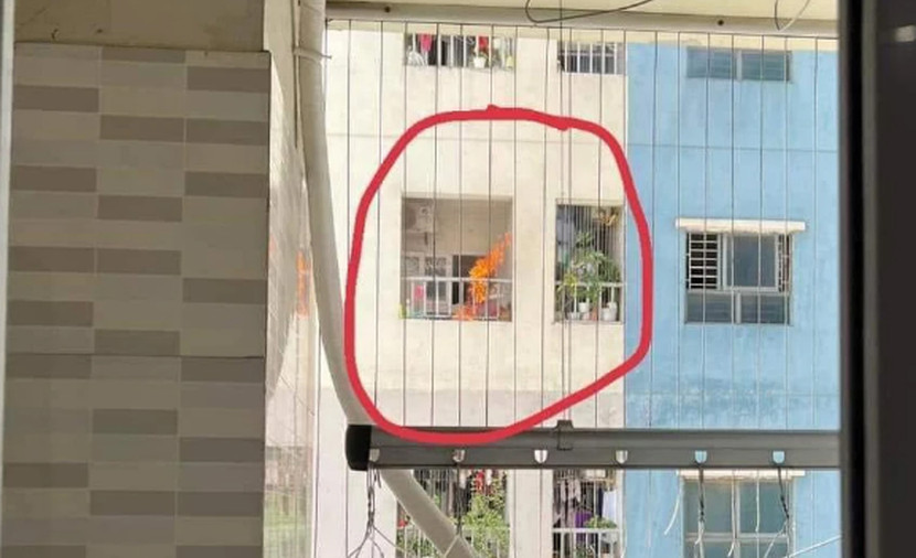 | Chiếc máy sấy quần áo đặt ở ban công bất ngờ bốc cháy tại một căn hộ thuộc tòa CT12B Kim Văn Kim Lũ, quận Hoàng Mai, Hà Nội |
