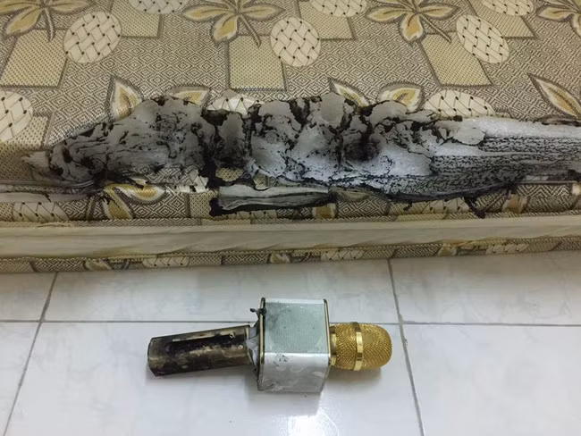 Anh S. cho biết thêm, may mắn, vào thời điểm xảy ra vụ nổ, chiếc micro karaoke được đặt ở nơi cách xa các vật dễ cháy, nên vụ nổ không bén lửa xung quanh nhưng, phần tay cầm của chiếc micro đã bị cháy đen.