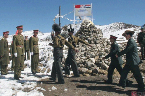 Binh sĩ Trung Quốc (trái) và binh sĩ Ấn Độ tại khu vực biên giới hai nước