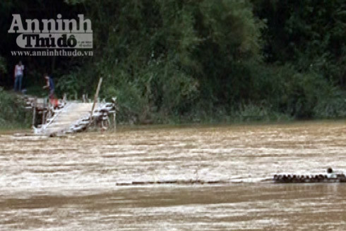Cầu tre qua xóm Lân, xã Tịnh Long, TP Quảng Ngãi bị nước cuốn trôi
