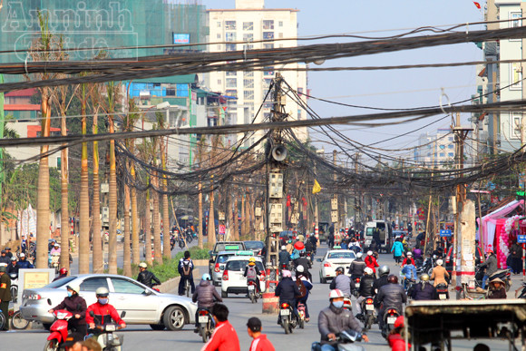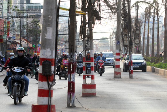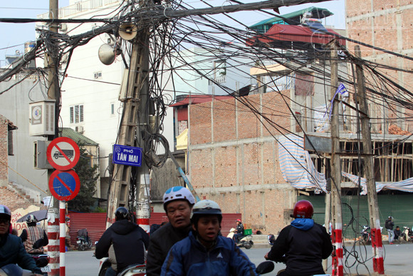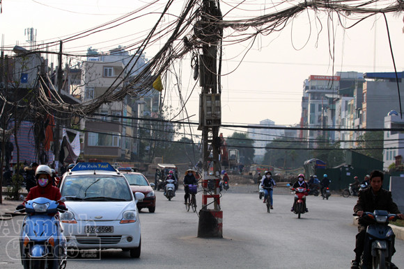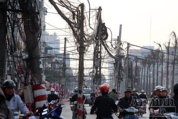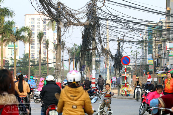 Trên đầu mà mớ bòng bong, dưới đất là "thiên la địa võng" do cột điện tạo thành