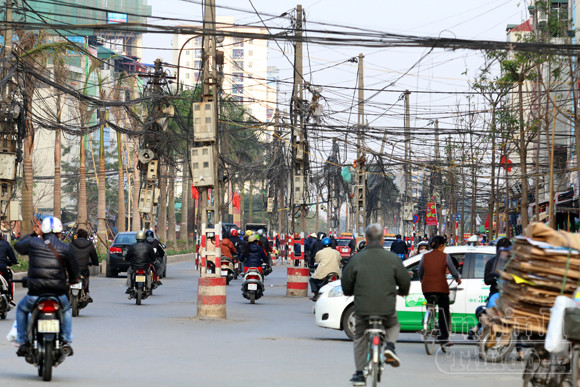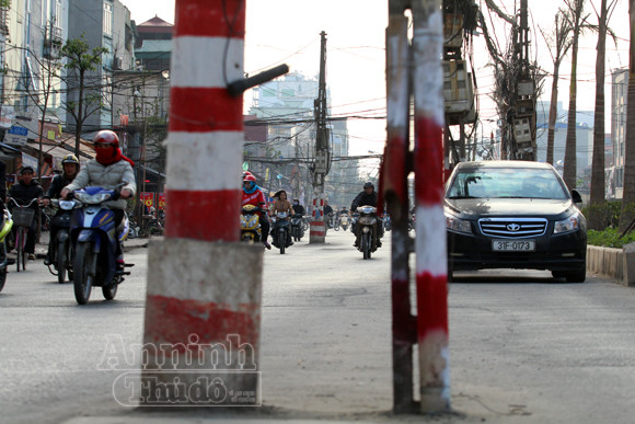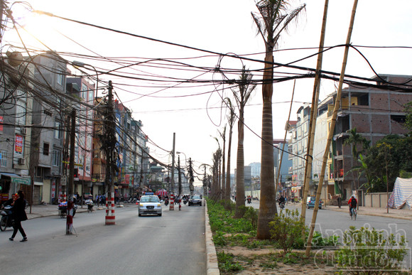 Chiếc cột điện vô duyên kiểu này thường xuất hiện ở tuyến phố mới của Hà Nội thời gian rất dài