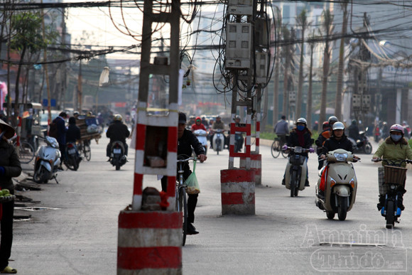 Những hàng cột này nếu đi ban đêm sẽ rất nguy hiểm cho người tham gia giao thông